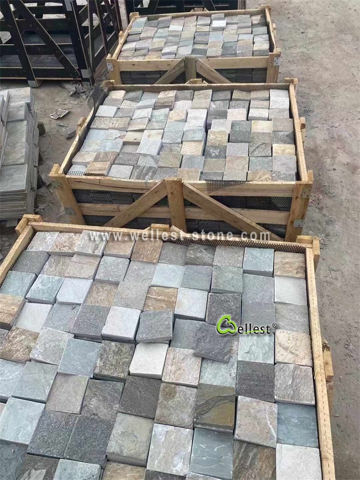 S014 Yellow wood Slate cobble stone