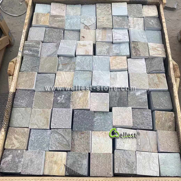 S014 Yellow wood Slate cobble stone