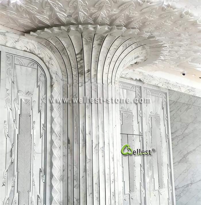 Stone Dry-Hanging Installation:** Install from the bottom up—starting with the straight sections of the column shaft, followed by the curved sections at the top, and finally the ceiling interface.
